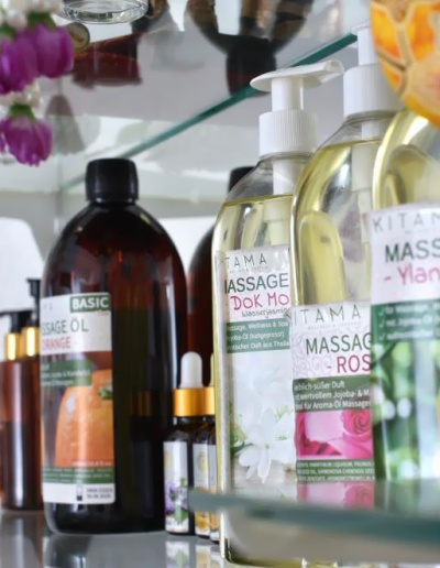 Für meine Massagen verwende ich ausschließlich hochwertige Massageöle, Kräuter und Düfte, um Ihnen ein erstklassiges und unvergessliches Erlebnis zu bieten. Lassen Sie sich von meinen heilenden Händen verwöhnen und genießen Sie pure Entspannung und Wohlbefinden.